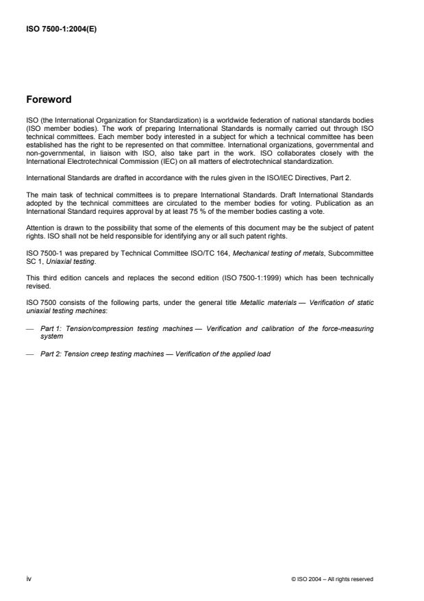 ISO 7500-1:2004 - Metallic materials -- Verification of static uniaxial testing machines