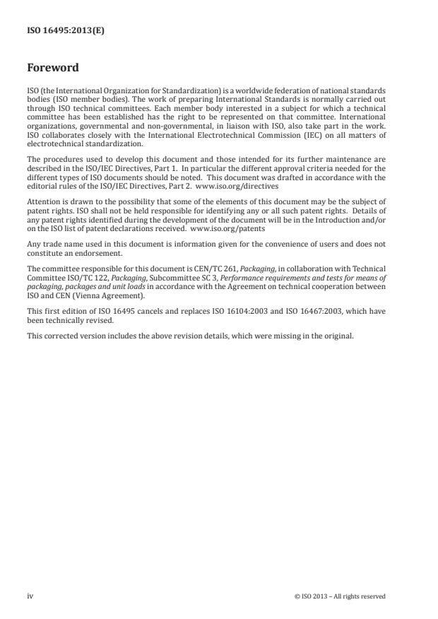 ISO 16495:2013 is a standard published by the International Organization for Standardization (ISO). Its full title is "Packaging — Transport packaging for dangerous goods — Test methods". This standard covers: ISO 16495:2013 specifies the information needed for the design type testing of packaging, Intermediate Bulk Containers ( IBCs) and large packaging intended for use in the transport of dangerous goods.