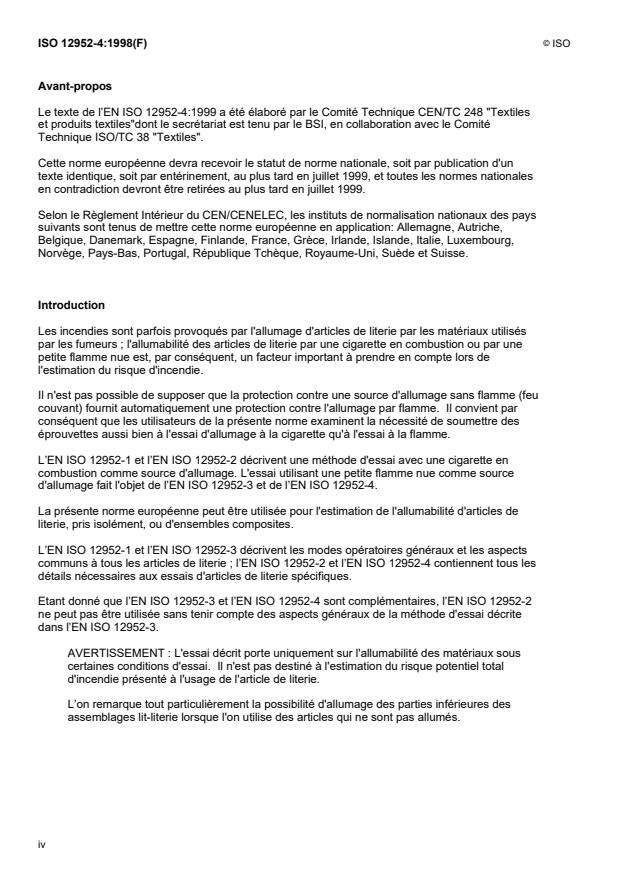 Le texte de l’EN ISO 12952-4:1999 a été élaboré par le Comité Technique CEN/TC 248 "Textiles