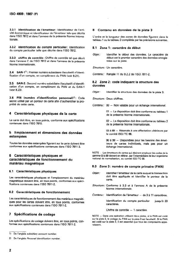 ISO 4909:1987 - Cartes bancaires -- Zone magnétique -- Contenu en données de la piste 3