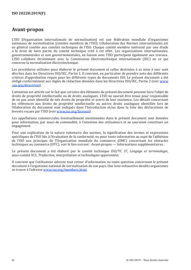 ISO 20228:2019 is a standard published by the International Organization for Standardization (ISO). Its full title is "Interpreting services — Legal interpreting — Requirements". This standard covers: This document establishes the basic principles and practices of legal interpreting services, and specifies the competences of legal interpreters. It also describes the various legal settings and provides recommendations for the corresponding interpreting modes. It is applicable to all parties involved in facilitating communication between users of legal services using a spoken or signed language.