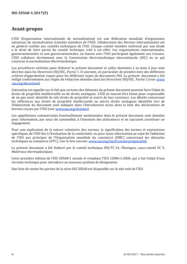 - Scope limitations: The standard defines designation and basis for specifications but does not provide engineering performance data or processing conditions; test methods and specimen preparation are referenced in ISO 20568-2 and other normative documents.
