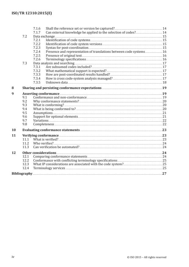 Keywords: ISO/TR 12310:2015, health informatics, conformance, terminological systems, EHR, interoperability, code system, reference set, terminology governance.