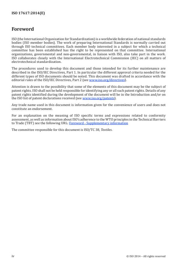 ISO 17617:2014 is classified under the following ICS (International Classification for Standards) categories: 59.080.01 - Textiles in general. The ICS classification helps identify the subject area and facilitates finding related standards.