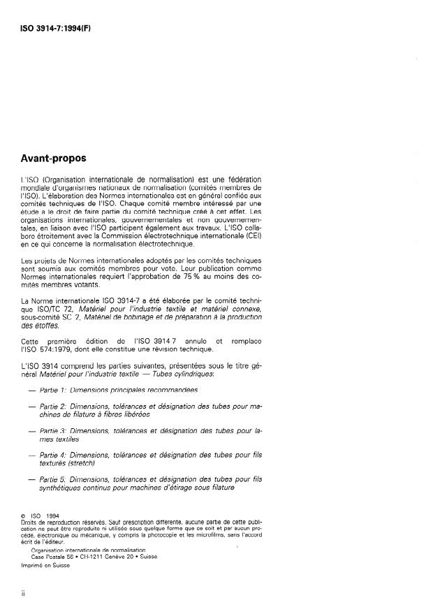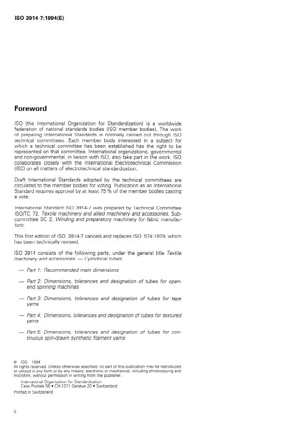 ISO 3914-7:1994 - Textile machinery and accessories -- Cylindrical tubes