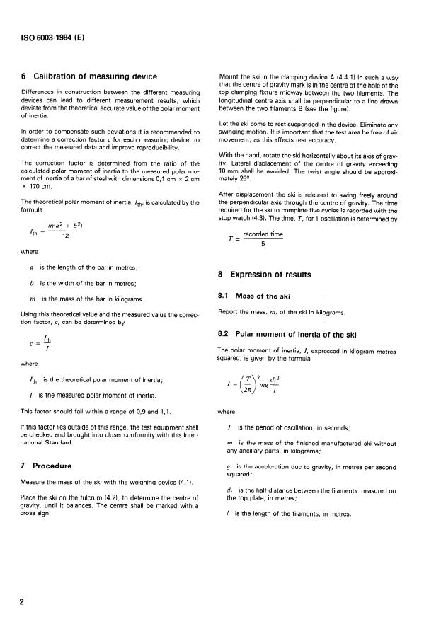 ISO 6003:1984 - Alpine skis -- Determination of mass and polar moment of inertia -- Laboratory measurement method