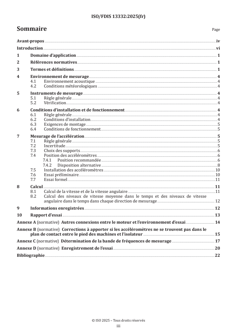 Keywords: structure-borne noise, reciprocating internal combustion engines, engine feet, vibration measurement, accelerometer, test code, high-speed engines, medium-speed engines, measurement uncertainty.