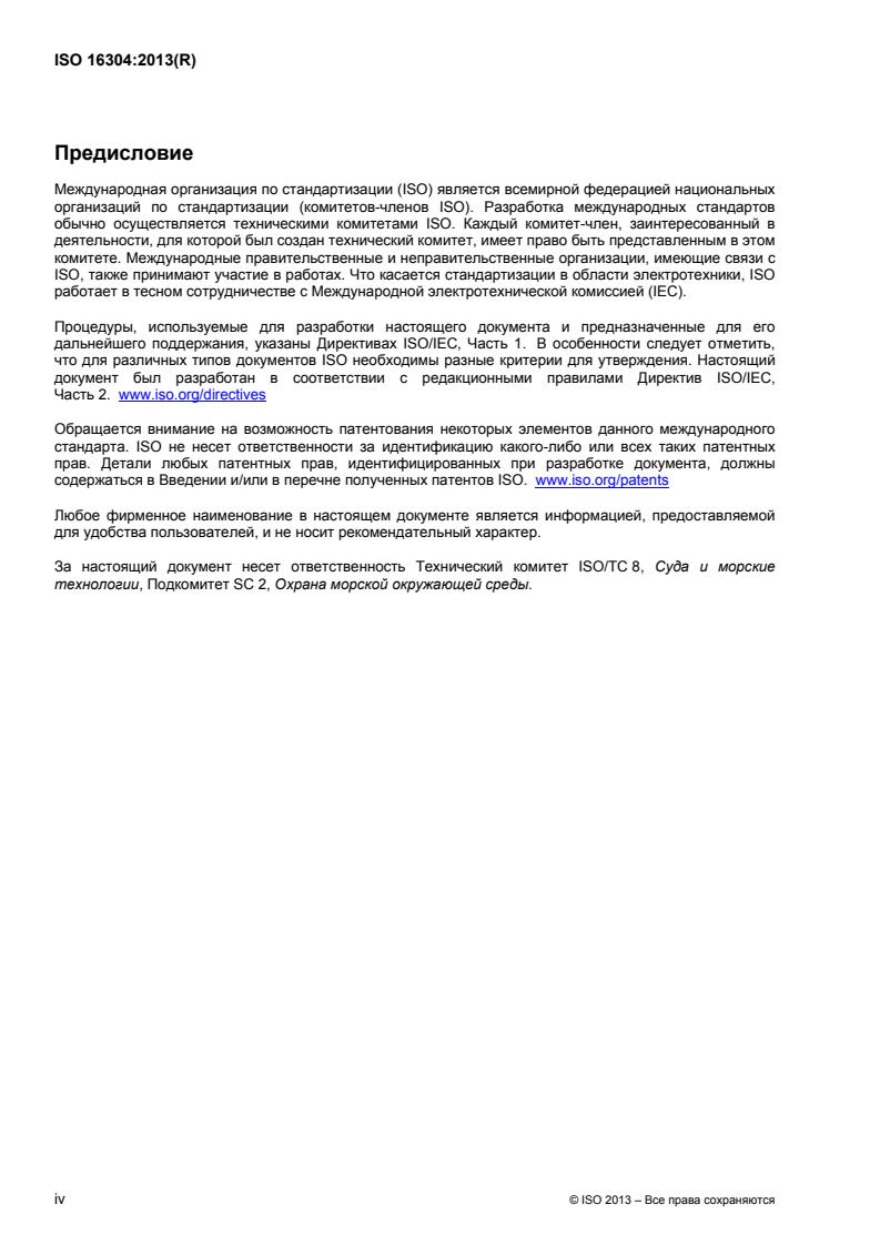 ISO 16304:2013 is a standard published by the International Organization for Standardization (ISO). Its full title is "Ships and marine technology — Marine environment protection — Arrangement and management of port waste reception facilities". This standard covers: ISO 16304:2013 applies to the management of ship generated waste regulated by MARPOL that is discharged at ports and terminals. It also covers principles and issues that should be considered in the development of a port waste management plan (PWMP), its implementation and port reception facilities (PRF) operations. The operation of any PRF is governed by the principles and procedures included in the PWMP. The procedures to operate the PRF and the development of a PWMP are closely linked and therefore are integrated into ISO 16304:2013. ISO 16304:2013 addresses the principles and issues that should be considered in: a) The development of a port waste management strategy; b) The design and operation of PRFs; c) PWMP development, implementation and compliance; and d) PRF management and accountability. ISO 16304:2013 has been designed to be used by ports of any size and capability. It does not give specifics on the size or location of PRFs in each port, but provides a list of principles to be considered and applied to any size or type of port or terminal (e.g. marina, fishing port, container terminal, oil terminal, roll on/roll off terminal, cruise terminal, ferry terminal, bulk or general cargo terminal, ship repair or recycling facility, and offshore terminal). ISO 16304:2013 can also be used by those ports that have entered regional arrangements for the provision of their PRF, or inland ports and marinas, providing that the definition of waste and its management in the national legislation of the facility are referenced accordingly. Many ports already have systems in place that work efficiently; therefore ISO 16304:2013 can be used by ports with existing PRFs as well as new ports or existing ports developing new PRFs.