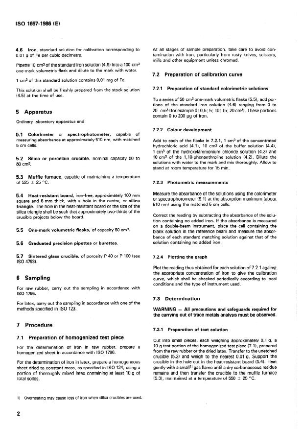 ISO 1657:1986 - Rubber, raw and rubber latex -- Determination of iron content -- 1,10-Phenanthroline photometric method