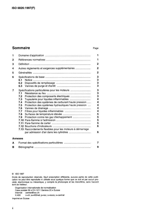 ISO 6826:1997 - Moteurs alternatifs a combustion interne -- Protection contre l'incendie