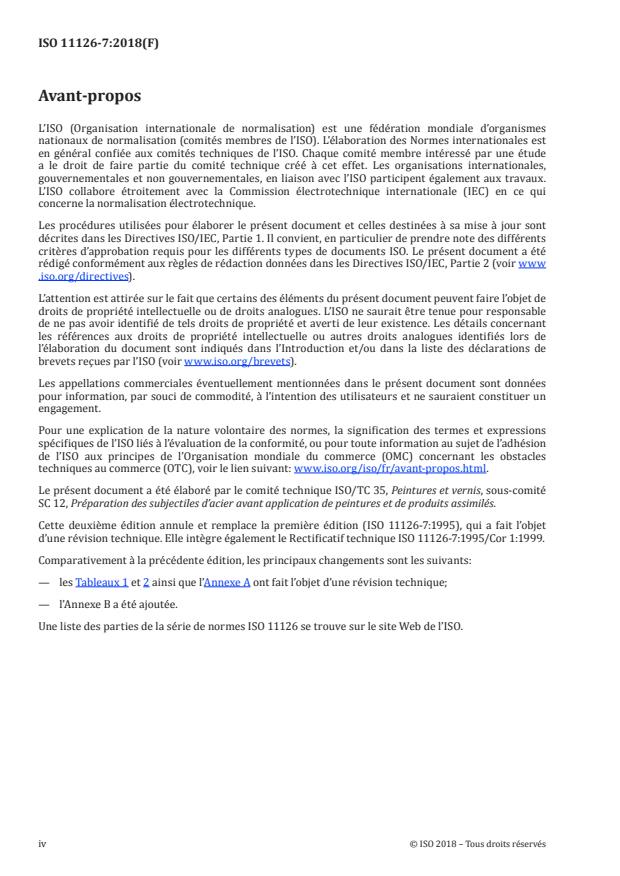 Cette deuxième édition annule et remplace la première édition (ISO 11126-7:1995), qui a fait l’objet
