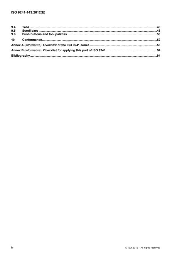 - Accessibility and conformance - recommendations for accessible form elements and conformance assessment; includes an informative checklist (Annex B) and references to other ISO 9241 parts.