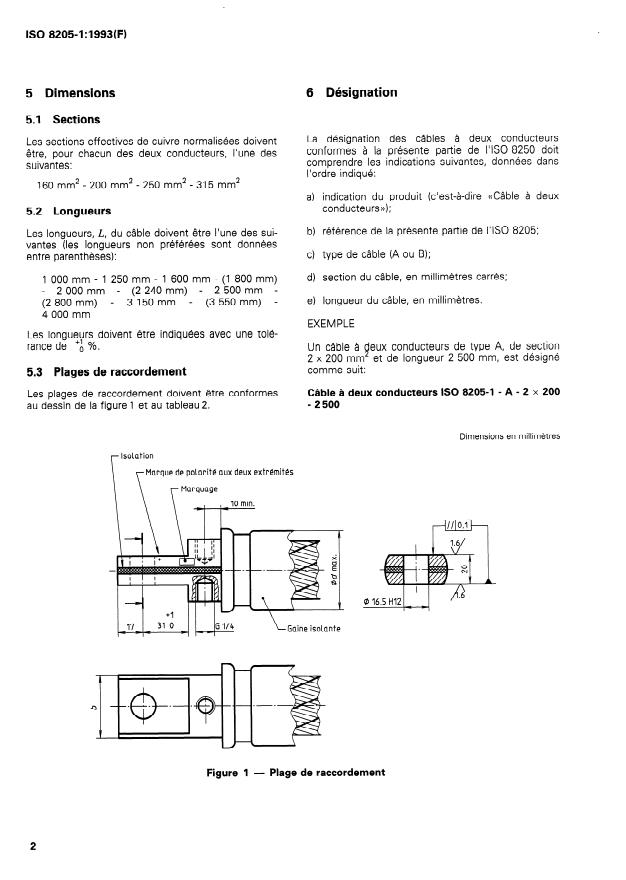 Partie 1: Dimensions et prescriptions pour cables 5 deux conducteurs