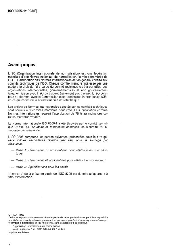 ISO 8205-1:1993 - Câbles secondaires refroidis par eau, pour le soudage par résistance