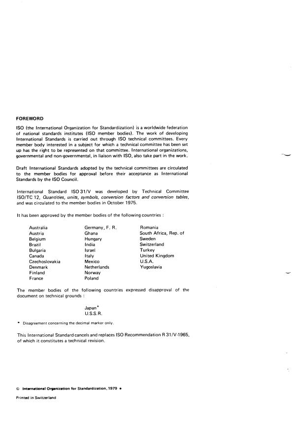 International Standard IS0 31/V was developed by Technical Committee