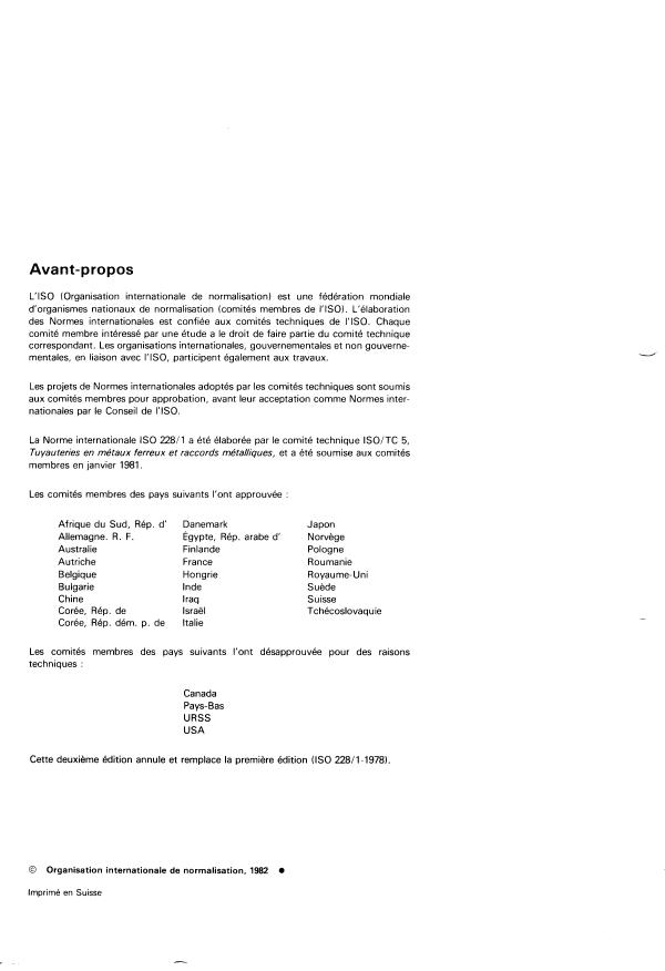 Cette deuxième édition annule et remplace la première édition (IS0 228/1-1978).