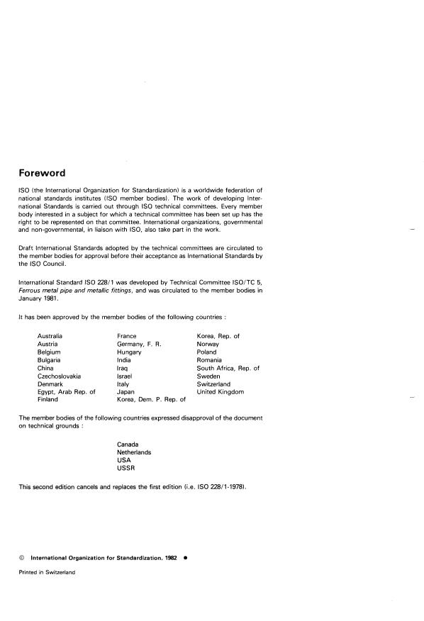 ISO 228-1:1982 - Pipe threads where pressure-tight joints are not made on the threads