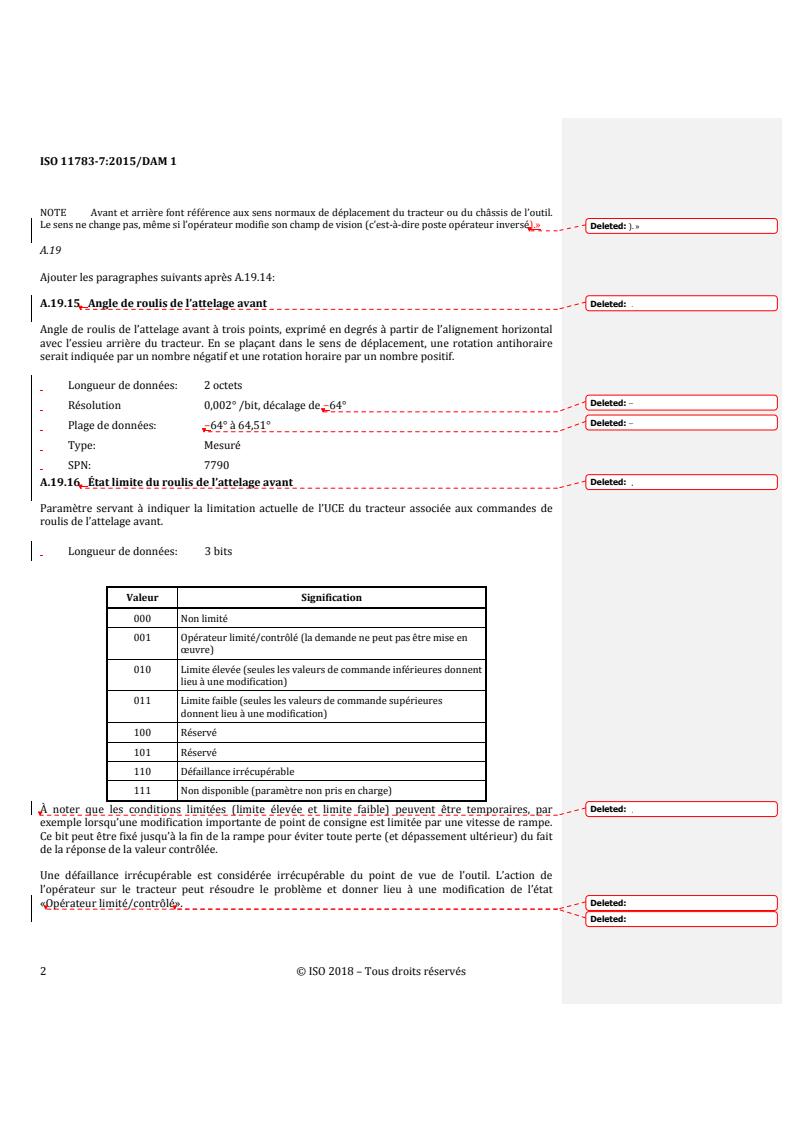 REDLINE ISO 11783-7:2015/Amd 1:2018 - Tractors and machinery for agriculture and forestry — Serial control and communications data network — Part 7: Implement messages application layer — Amendment 1 Released:6/21/2018