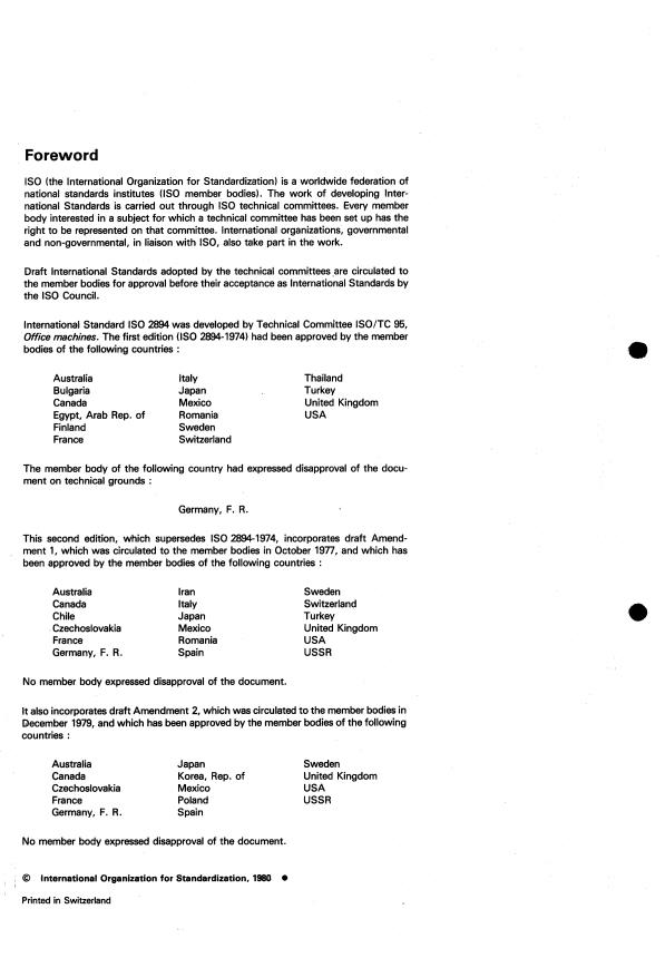 Office machines. The first edition (IS0 2894-1974) had been approved by the member