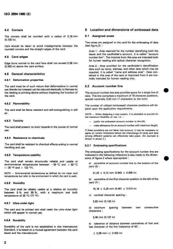ISO 2894:1980 is a standard published by the International Organization for Standardization (ISO). Its full title is "Embossed credit cards — Specifications, numbering system and registration procedure". This standard covers: Embossed credit cards — Specifications, numbering system and registration procedure