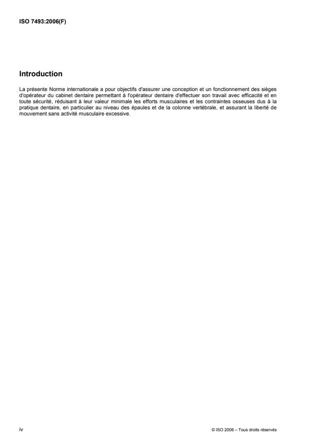 L'ISO 7493:2006 spécifie des exigences, des recommandations et des méthodes d'essai relatives au siège d'opérateur des cabinets dentaires, ainsi que des exigences relatives aux instructions d'utilisation du fabricant, au marquage et à l'emballage. Elle comprend également des recommandations destinées aux fabricants, relatives à la conception des sièges de l'opérateur. Pour les besoins de l'ISO 7493:2006, le terme «opérateur dentaire» désigne également l'assistant(e) du dentiste et l'hygiéniste dentaire.