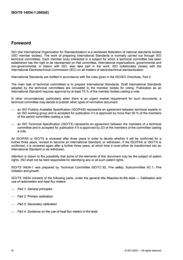 ISO/TS 14934-1:2002 is a technical specification published by the International Organization for Standardization (ISO). Its full title is "Fire tests — Calibration and use of radiometers and heat flux meters — Part 1: General principles". This standard covers: ISO/TS 14934-1:2002 gives guidelines for calibration and use of radiometers and heat flux meters in fire testing and for correction of the sensitivity function due to convection effects. It briefly describes the calibration methods, the most commonly used types of radiometers and heat flux meters, and the fire tests in which these transducers are used. ISO/TS 14934-1:2002 is applicable to total hemispherical radiometers, total heat flux meters of Schmidt-Boelter (thermopile) and Gardon (foil) type. It applies only to instruments having plane receivers and does not apply to receivers in the form of wires, spheres, etc.