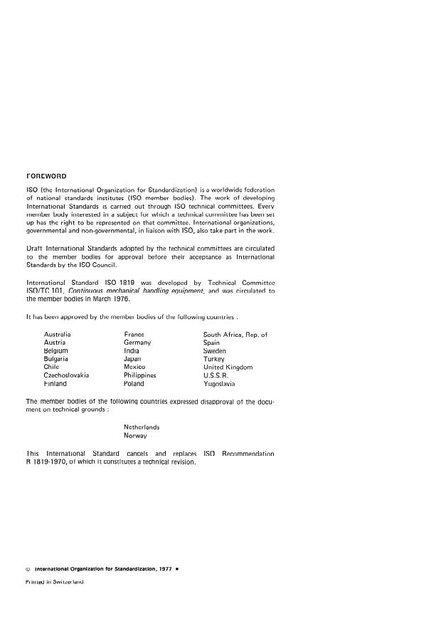 ISO 1819:1977 is classified under the following ICS (International Classification for Standards) categories: 53.040.01 - Continuous handling equipment in general. The ICS classification helps identify the subject area and facilitates finding related standards.