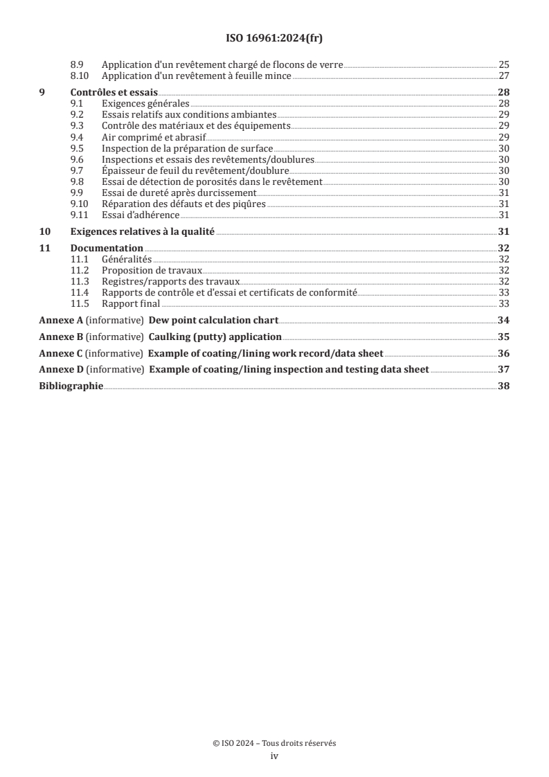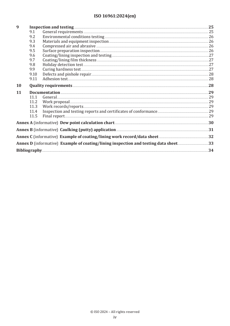 Keywords: ISO 16961:2024, internal coating, tank lining, steel storage tanks, corrosion protection, surface preparation, fibreglass lining, epoxy coating, inspection and testing.