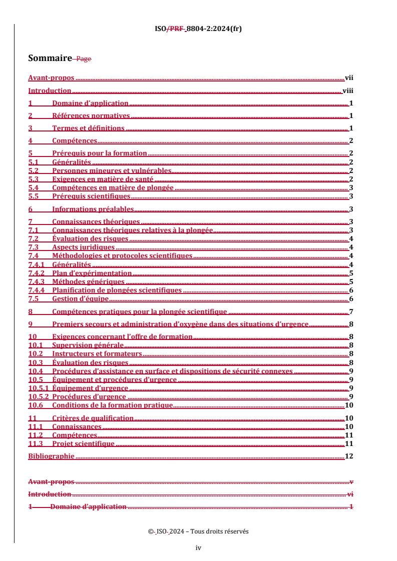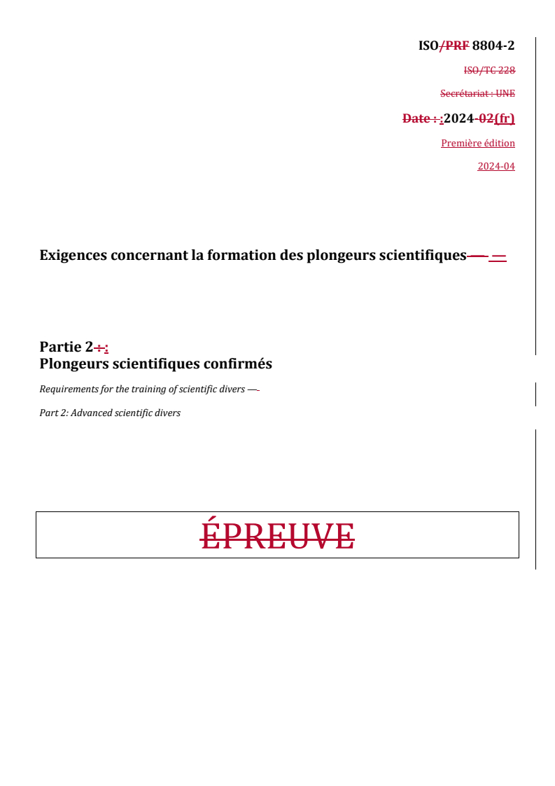 REDLINE ISO 8804-2:2024 - Exigences concernant la formation des plongeurs scientifiques — Partie 2: Plongeurs scientifiques confirmés Released:5/21/2024