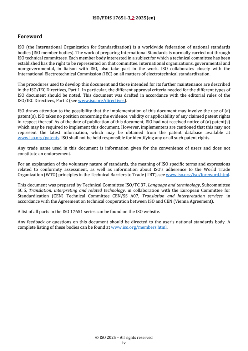 ISO/FDIS 17651-3.2 - Simultaneous interpreting — Interpreters’ working environment — Part 3: Requirements and recommendations for interpreting hubs Released:21. 11. 2025
