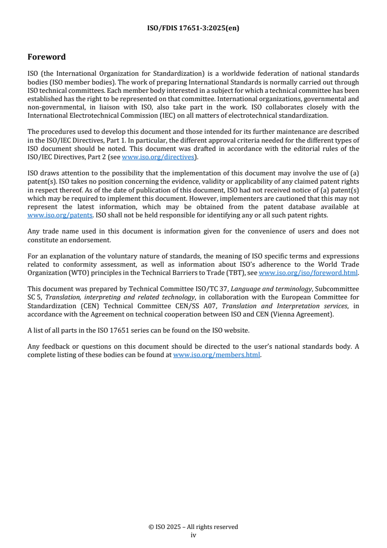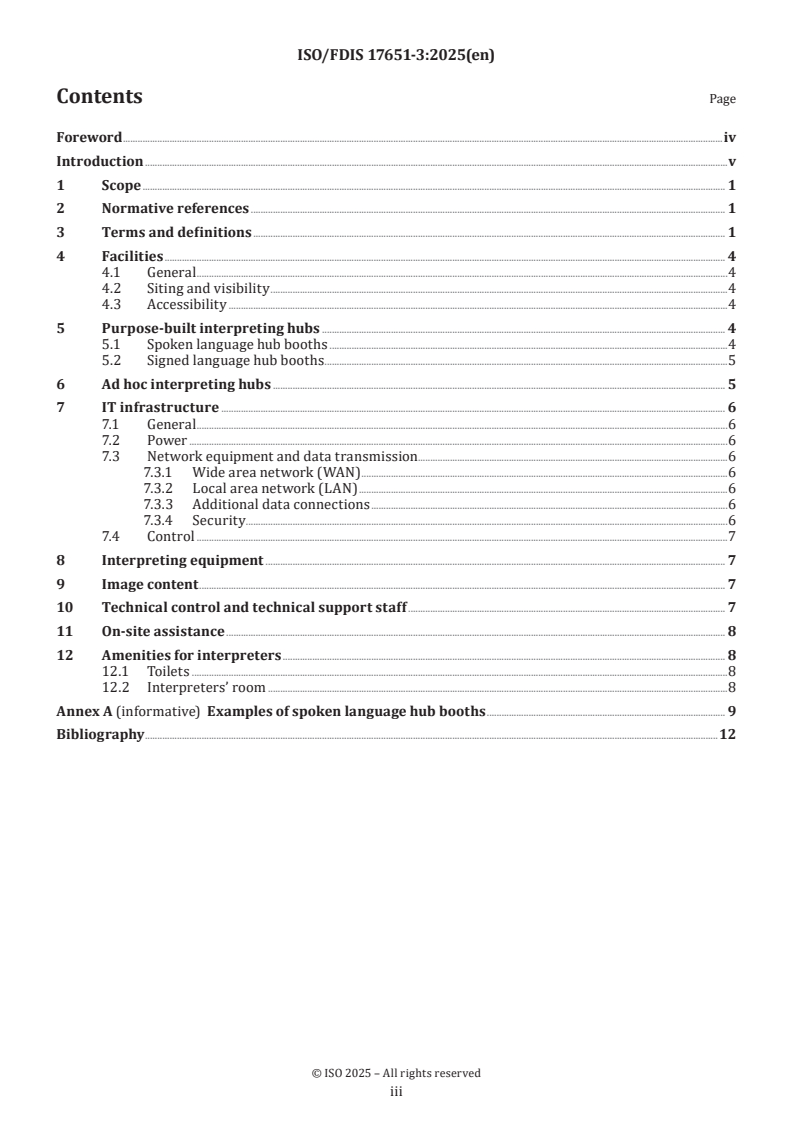 ISO/FDIS 17651-3 - Simultaneous interpreting — Interpreters’ working environment — Part 3: Requirements and recommendations for interpreting hubs Released:22. 05. 2025