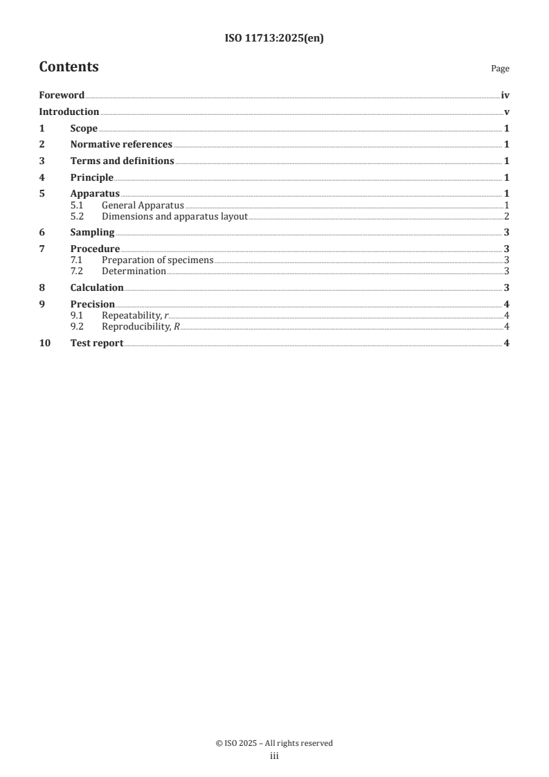 - Test report must identify the sample, reference ISO 11713:2025, method, date, results, deviations and unusual observations.