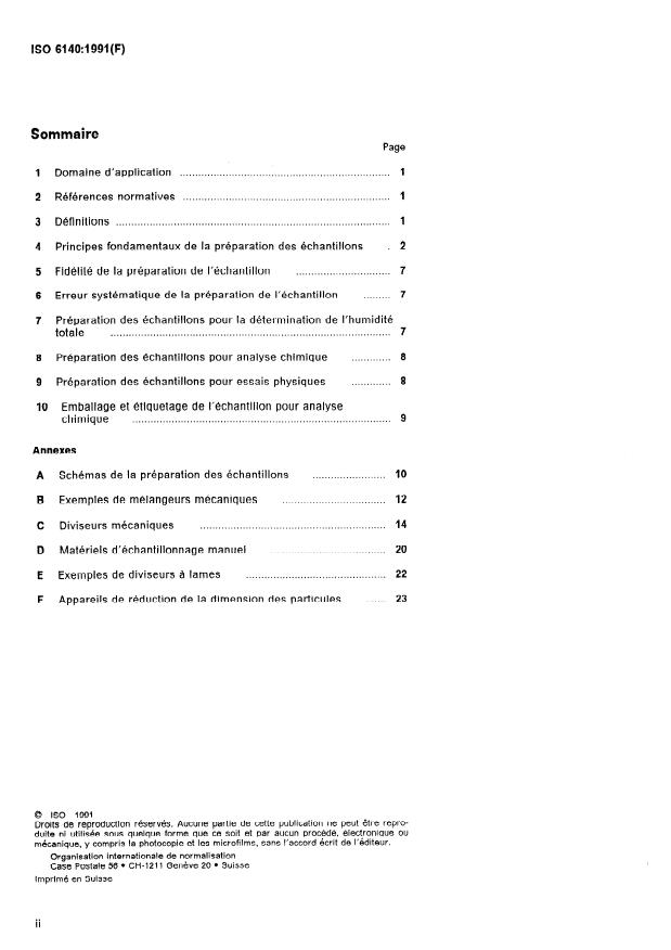 ISO 6140:1991 is a standard published by the International Organization for Standardization (ISO). Its full title is "Aluminium ores — Preparation of samples". This standard covers: Specifies methods of treatment of gross samples and subsamples in order to preparate samples for the determination of moisture, chemical analysis and physical testing. Annex A forms an integral part of this standard. Annexes B, C, D, E and F are for information only.