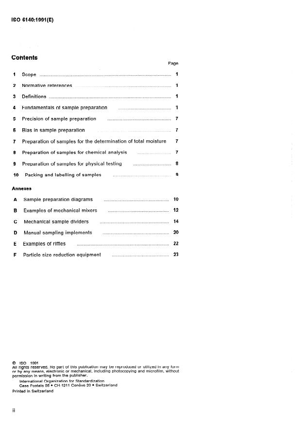 INTERNATIONAL ISO STANDARD 6140 First edi tion 19914145 Aluminium ores - Preparation of samples Minerais alumineux - Pr@ar-ation des echantillons Reference number ----- ISO 6140:1991(E) SIST ISO 6140:2000