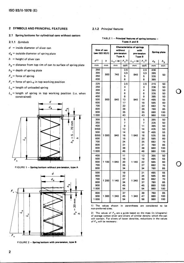 ISO 93-2:1978 is a standard published by the International Organization for Standardization (ISO). Its full title is "Textile machinery and accessories — Cylindrical sliver cans — Part 2: Spring bottoms". This standard covers: Textile machinery and accessories — Cylindrical sliver cans — Part 2: Spring bottoms