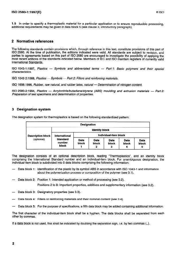 1 .l This part of IS0 2580 establishes a system of designation for acrylonitrile/butadiene/styrene thermoplastic
