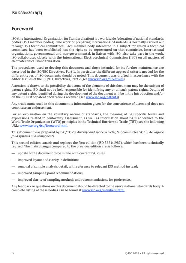 ISO 5884:2018 is a standard published by the International Organization for Standardization (ISO). Its full title is "Aerospace series - Fluid systems and components - Methods for system sampling and measuring the solid particle contamination in hydraulic fluids". This standard covers: This document specifies best practice for sampling hydraulic fluid from aircraft hydraulic systems and other hydraulic systems associated with aerospace purposes.
