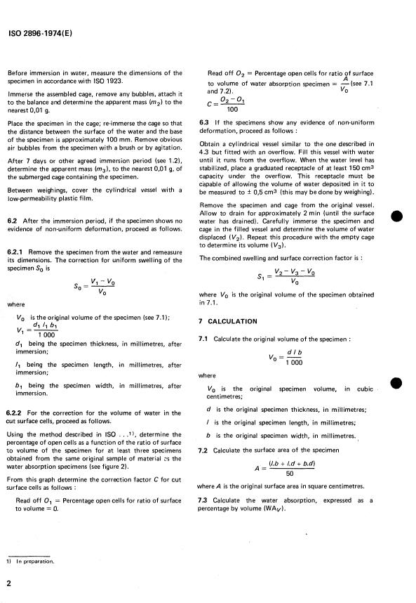 ISO 2896:1974 - Rigid cellular plastics — Determination of water absorption Released:12/1/1974