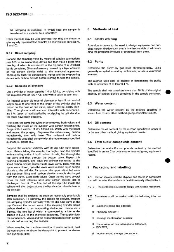 ISO 5923:1984 - Fire protection — Fire extinguishing media — Carbon dioxide Released:2/1/1984