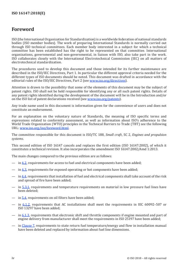 ISO 16147:2018 is a standard published by the International Organization for Standardization (ISO). Its full title is "Small craft — Inboard diesel engines — Engine-mounted fuel, oil and electrical components". This standard covers: This document establishes requirements for the design and installation of engine-mounted fuel, oil and electrical components on diesel inboard-mounted engines for minimizing fuel leakage, risk of electric shock and the risk of and/or the spread of fire on small craft of hull length up to 24 m.