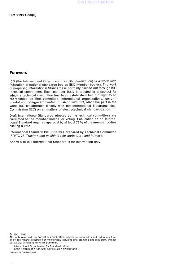 ISO 9193:1990 is a standard published by the International Organization for Standardization (ISO). Its full title is "Lawn and garden ride-on (riding) tractors — Power take-off". This standard covers: Lawn and garden ride-on (riding) tractors — Power take-off