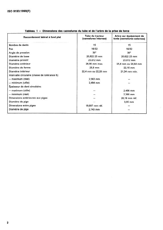 ractéristiques exigées pour la prise de force (p.d.f.)