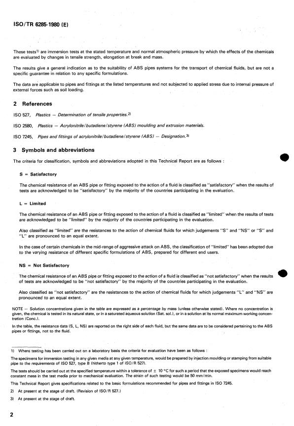 This Technical Report represents the present technical knowledge relating to the chemical resistance of ABS and will serve only as a