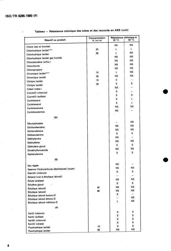 La résistance chimique d’un tube ou d’un raccord en ABS soumis à l’action d’un fluide est classée «non satisfaisante)) lorsque les