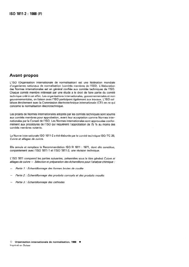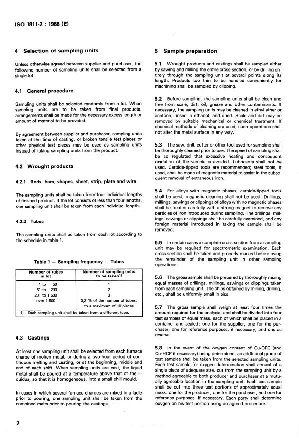 ISO 1811-2:1988 - Cuivre et alliages de cuivre -- Sélection et préparation des échantillons pour l'analyse chimique