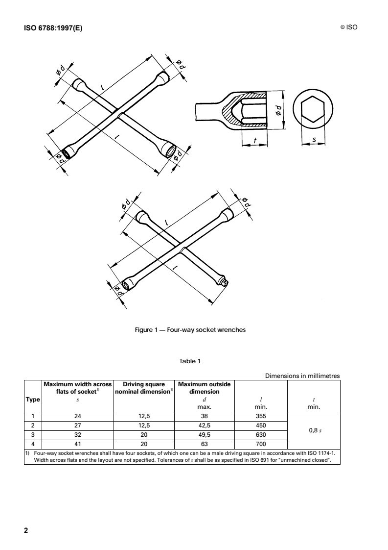 This International Standard specifies the dimensions of socket heads, in millimetres, of four-way socket wrenches
