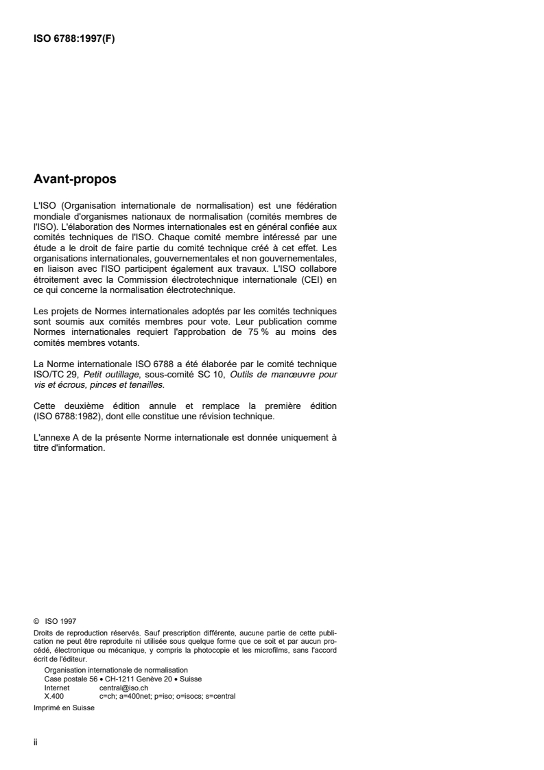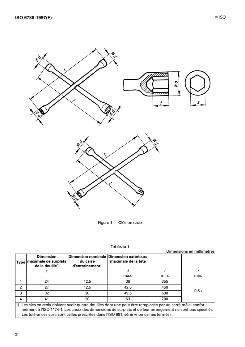 ISO 6788:1997 - Outils de manoeuvre pour vis et écrous — Clés en croix — Dimensions et essai de torsion Released:12/18/1997