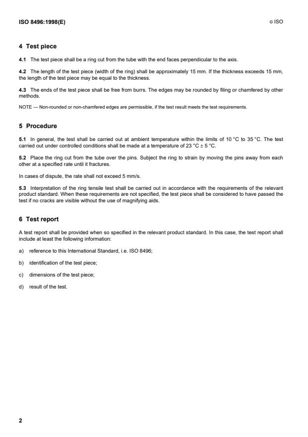 ISO 8496:1998 is a standard published by the International Organization for Standardization (ISO). Its full title is "Metallic materials — Tube — Ring tensile test". This standard covers: Metallic materials — Tube — Ring tensile test