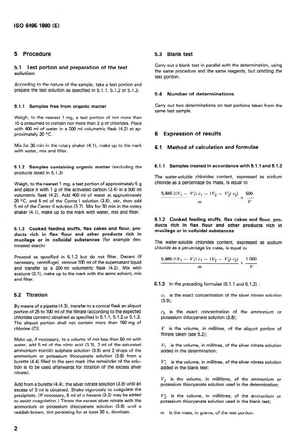 ISO 6495:1980 - Animal feeding stuffs -- Determination of water-soluble chlorides content