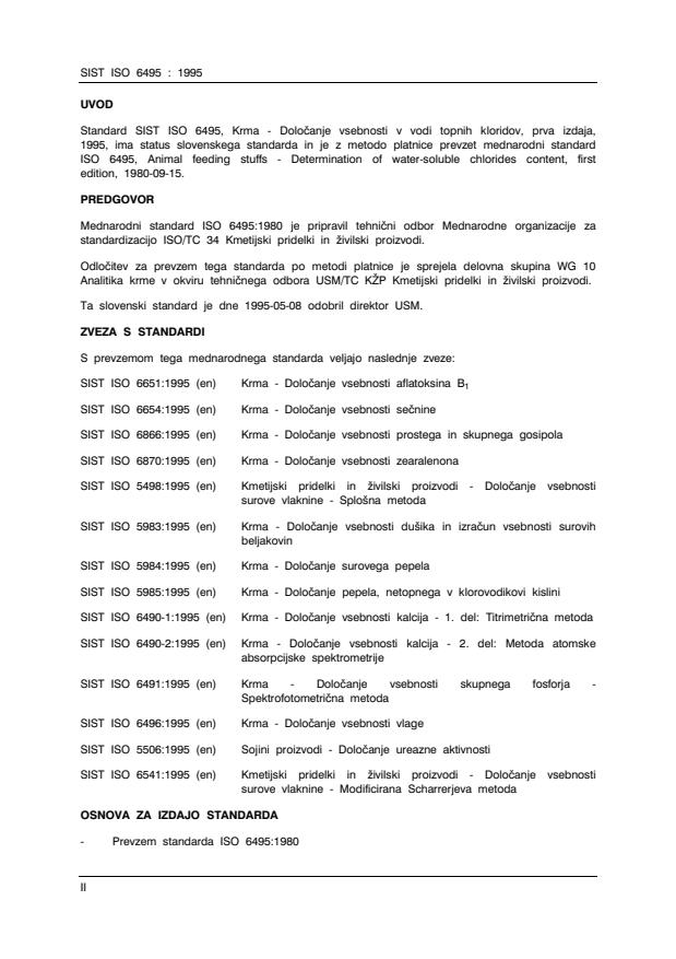 Standard SIST ISO 6495, Krma - Dolo~anje vsebnosti v vodi topnih kloridov, prva izdaja,